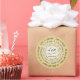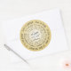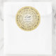 Love text favour label sticker. Wedding scripture from first Corinthians 13 is printed in circular form in black text over a gold / beige background. "Love never fails" text in centre. Also looks fine on the square sticker. Larger, 3 inch size is best or text will be too small.