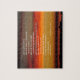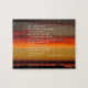 This custom jigsaw puzzle uses a quote from 1 Corinthians 13: 4-8 as an overlay on an art print I created using a watercolor technique of a sunset. The setting is a sunset over the Pacific Ocean along the coastline in San Diego, California. As a Christian artist, I seek to make sure that the biblical quote I am using is a good marriage with the art print I put it on. In this particular case, I was working with this Bible verse trying to find a suitable print to put it on. When I came across this one, I knew it was a fit. Finalizing the font and positioning the verse on this print was a tedious process of trial and error. I am pleased with the final look, as the font I chose looked best with the picture.
