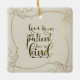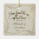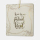 Inspirational scripture personalized Christmas ornament depicts a simple gold frame with elegant hand drawn leaves. It features Bible Verse 1Corinthians 13:4, "Love is patient, love is kind." The back features Bible Verse Song of Solomon 3:4, " I have found the One my soul loves." Customize the back with names and date.