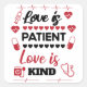 Love is patient love is kind square sticker
