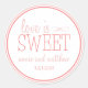 Love Is Sweet Labels / Stickers (Light Pale Pastel Blush Pink / Pale Terra Cotta Red / White)...These fun and chic love is sweet labels / stickers are ideal for wedding favours or a wedding candy bar / buffet full of chocolate, suckers, lollipops, taffy, and sugar. Let your guests know to take a treat home with them to remember your wedding. The design features an array of whimsical fonts with the bride and groom names as well as the wedding date. Great for a candy themed wedding. Ideal for a destination wedding. Perfect for any bride or groom with a sweet tooth. Great idea for a bridal shower or bachelorette party too. Full customizable...just change the names and the dates and your favour stickers are ready to be used. Available in a wide range of colours to match your wedding colours. See WindyCityStationery.com for our complete line of "Love Is Sweet" labels in a wide range of colours as well as matching "Love Is Sweet" postage stamps, thank you cards, return address labels, save the dates and more.
