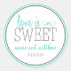 Love Is Sweet Labels / Stickers (Teal / Aqua / Turquoise / Dark Grey)...These fun and chic love is sweet labels / stickers are ideal for wedding favours or a wedding candy bar / buffet full of chocolate, suckers, lollipops, taffy, and sugar. Let your guests know to take a treat home with them to remember your wedding. The design features an array of whimsical fonts with the bride and groom names as well as the wedding date. Great for a candy themed wedding. Ideal for a destination wedding. Perfect for any bride or groom with a sweet tooth. Great idea for a bridal shower or bachelorette party too. Full customizable...just change the names and the dates and your favour stickers are ready to be used. Available in a wide range of colours to match your wedding colours. See WindyCityStationery.com for our complete line of "Love Is Sweet" labels in a wide range of colours as well as matching "Love Is Sweet" postage stamps, thank you cards, return address labels, save the dates and more.
