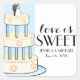 Send your wedding home with guests in style. The left side of this cake features a traditional wedding cake. Love is Sweet is written on the right with the bride and groom names and their wedding date below.