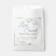 These beautiful favour bags are simple, elegant and beautiful. They feature a classy and stylish design with elegant dusty blue and grey script lettering and silver grey frilly lace curls and swirls in the corners. The text reads: Love is Sweet, Please take a treat! There is room for your names and the wedding date below. Wonderful and thoughtful way to thank your guests for celebrating with you.