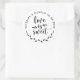 I am very excited to use these stickers for the paper coffee bean bags I bought. Size is perfect. They were exactly what I was expecting. Loved these black and white stickers. Font is clear. The only thing I wish is that I made the names and date a little larger.