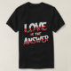Bold "Love is the Answer" text graphic featuring red and black leopard print style