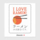 Show off your love for ramen with this stylish and minimal I Love Ramen sticker! Featuring a bold ramen noodle design with chopsticks over a rising sun, plus Japanese text meaning "I love ramen", this sleek and modern design is perfect for Japan travelers, ramen lovers, and foodie enthusiasts. Whether you’re obsessed with tonkotsu, miso, or shoyu ramen, this sticker is a must-have for anyone who adores Japanese cuisine and culture. Great for decorating laptops, water bottles, notebooks, and more!