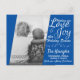 Send a festive Christmas greetings to your friends and family with this Love & Joy Blue Christmas Holiday Postcard. It features your favourite photo and space to personalize with your name and a message.