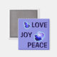 This magnet has a photograph of butterflies with the words love, joy, and peace!