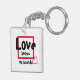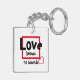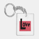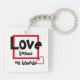 Love knows no bounds! Black and red "Love knows no bounds" on a pure bright white acrylic keychain. It boldly features the word Love in bold black text that extends outside the box of red. On the reverse side, "Love Knows No Bounds" escapes the confines of the red edges of a box along with a red heart. Love large and outside the box with this bold declaration of unconditional love.