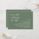Mark the beginning of your forever with elegance using our contemporary-themed wedding elopement celebration invitation card, "Love, Laughter and Happily ever after". Perfect for couples extending their joyous occasion, this invitation exudes sophistication with a hint of playfulness, setting the stage for a memorable event. Adorned with a timeless rustic forest sage green theme, it adds a touch of refined charm to your festivities. Crafted by TeeshaDerrick, this invitation promises to beautifully capture your love story.