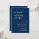 Mark the beginning of your forever with elegance using our contemporary boho wedding navy blue theme wedding elopement celebration invitation card, "Love laughter and Happily ever after". Perfect for couples extending their joyous occasion, this invitation exudes sophistication with a hint of playfulness, setting the stage for a memorable event. Adorned with a timeless modern script design theme, it adds a touch of refined charm to your festivities. Crafted by TeeshaDerrick, this invitation promises to beautifully capture your love story.