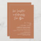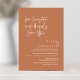Mark the beginning of your forever with elegance using our contemporary boho wedding terracotta copper brown theme wedding elopement celebration invitation card, "Love laughter and Happily ever after". Perfect for couples extending their joyous occasion, this invitation exudes sophistication with a hint of playfulness, setting the stage for a memorable event. Adorned with a timeless modern script design theme, it adds a touch of refined charm to your festivities. Crafted by TeeshaDerrick, this invitation promises to beautifully capture your love story.