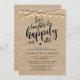 Planning a happily ever after dinner and dancing celebration at the wedding day? Invite your beloved guests with this "Love, Laughter and Happily Ever After", in modern rustic script design (cottage brown wood, string lights background) themed, indicating the date, time, venue, and RSVP details.