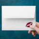 This custom envelope features a scripted letter interior with a deep red lipstick kiss imprint.