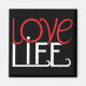 Simple and straightforward graphic text design in red, white and black, with positive words of encouragement, reminding us all to love life! Also available as a lovely matching card, stamp, sticker, keychain, t-shirts, apron, poster.