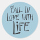 Show your fun loving personality with these motivational stickers featuring the quote "Fall In Love With Life" highlighted against a creamy sky blue background.