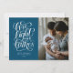 This modern single photo Hanukkah card features the hand lettered phrase "love, light and latkes" and a fun hand drawn pattern on the back.