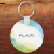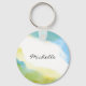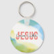 Personalized keychain depicts a modern abstract watercolor background with shades of blue and green. It features a powerful inspirational Christian quote, "Love Like Jesus." Customize the back with a name or details of your choice.