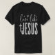 This black t shirt features a flowing white script at the bottom. Above it, "Love like" is written in an elegant white script with a small heart, followed by "JESUS" in a bold white font integrated with a cross. Small white stars are placed around the text. This design offers a religious message of love.