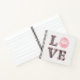This design features a pastel set of lips and LOVE in a black and white striped pattern.