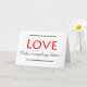 Share your love and care with someone special with our "Love Makes Everything Better" greeting card. This modern card features beautiful text that conveys your feelings perfectly. You can even customize the inside of the card with your own text and images to make it even more special. Whether you're sending a heartfelt message to a loved one or a thoughtful greeting to a dear friend, this card is sure to brighten their day. Order yours today!