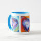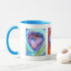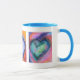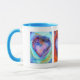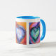 Vibrantly happy mug decorated with images of my original heart paintings. Each image incorporates a different text, the left says "Have Your Dreams And Make Them Happen", The centre says "Do What You Love, Do It With Passion", the right says "Love Makes Miracles". Each of the original paintings is unique. This makes a unique gift for someone special. If requested I can add different messages and images. Great Valentine gift. You will be remembered every day. I have a Zazzle mug and can vouch for not only the quality of the design, sturdiness and good balance when using but also the prompt delivery and expert packaging. It arrived safely in New Zealand.