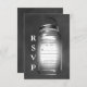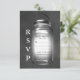 A Rustic Mason Jar on an illustrated chalkboard background decorates this RSVP. It is shown on the basic paper; however, the delicate or laid paper is a beautiful option for a more aged, vintage look. Scroll down to see the complete wedding collection.