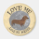 Due to the long, narrow build, the Dachshund is sometimes referred to as a wiener dog, hot dog, or sausage dog. Advertise yoour passion for this small dogbreed: "Love me - Love my Wiener"!