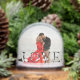 Choose this heartfelt gift for your wedding anniversaries, Valentine's Day, Christmas, weddings, engagements or other life events. The elegant snow globe design showcases two custom photos, front and back, with a unique floral typography of the word "love" at the bottom of the photo, adding a heartfelt and stylish sophisticated touch. The monogram and year established, give you the possibility to add extra personalization to this unique romantic gift. Cherish the most romantic moments of your life, while capturing the emotions with timeless simplicity. Perfect for couples seeking personalized romantic gifts, this keepsake creates a lasting display of love and affection, turning any special memory into a treasured decor piece.