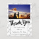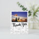 A classy postcard with Thank You written in a script font and accented by the couple's name in a modern font. There's space for your favourite wedding photo. Love is a cute word art pattern in light grey. The back has room for a handwritten note.