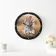 This colourful and stylish clock features your favourite personal family photo, with trendy white typography and a spot to add your name. The border of the clock is a dark black colour with white dots for the numbers.