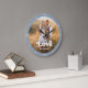 This colourful and stylish clock features your favourite personal family photo, with trendy white typography and a spot to add your name. The border of the clock is a soft, dusty blue colour.