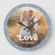 Love | Modern Script with Photo Dusty Blue Large Clock