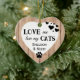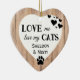 Love me love my Cats Personalized Ceramic Ornament with a rustic wooden background and a white heart in the centre, a black paw print and hearts. A great ornament for all those who love their cats. Also great to give to a friend that is a cat lover. All text can be amended as needed to customize then personalize with the pets name(s)