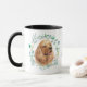 "LOVE my COCKER" declares this mug for the American Cocker Spaniel lover. Each side of the mug has a beautiful watercolor portrait of a spaniel in a blue green leaf wreath. Between the two images is the text, which may be easily customized by you.