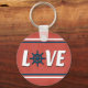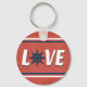 Love nautical design with sailing wheel and stripes decoration on grunge red background