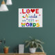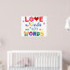 Inspirational Autism quote, Love Needs No Words, with beautiful floral illustrations and Autism puzzle pieces to support Autism children and their families.
