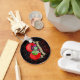 Tattoo-style artpiece of the cutest zombie kids Zack and Zoey. Text in banner reads "Love Never Dies". Blood drop background. Artwork by Erin Rose Tollefsen, copyright Kooky Spooky Art.