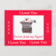 Says You're just my Type. Full of colour , kisses n hugs. Charming typewriter is whimsy and like a cartoon vintage one.