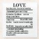 This image is a humourous take on a nutrition label, with the word "LOVE" at the top. It lists various aspects of love as if they were nutritional values.