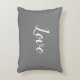 "Love" in pretty script on a comfy accent pillow. This one's colour is attractive grey with white script, and we have it in many other colours as well. Check out the others with an easy click to see which splash of colour would look best to add this loving message to your home decor. This example is set up with a washable cotton cover, but it's also easy to choose other fabric choices with different prices.