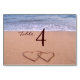 Two hearts intertwined in the sand with table number and the word "table" in script font. Great design for your beach wedding reception tables.