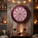 Take a shot at love with this elegantly designed "Love on the Line" custom dartboard. Perfect for date nights, anniversary celebrations, or as a unique wedding reception activity, this dartboard adds a playful and romantic touch to any game room or home bar. Featuring a sophisticated pink marble texture and a deep burgundy border, it balances style with a fun, competitive spirit.
