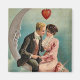 A beautiful vintage image of a man and a woman holding hands in love on the moon.