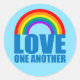 Beautiful inspirational rainbow sticker with the pretty quote LOVE ONE ANOTHER. Remind others to be kind and show each other love and kindness every day with this pretty bible verse quote. A cute LGBT ally gift for a Christian.