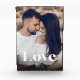 Create a sweet keepsake of your wedding, honeymoon or special moment with this beautiful custom acrylic photo block that's perfect for couples. Add a favourite vertical photo and customize with your names across the bottom. "Love" appears as a white text overlay in modern lettering.