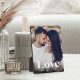 Create a sweet keepsake of your wedding, honeymoon or special moment with this beautiful custom photo plaque that's perfect for couples. Add a favourite vertical photo and customize with your names across the bottom. "Love" appears as a white text overlay in modern lettering.