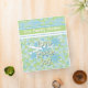 Retro style family photo album with lots of pretty blue and white flowers on an olive green background, text that reads "love peace joy" and a place you can easily add your family name or other text!