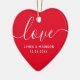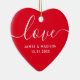 Love Personalized Couples Red Photo Ornament. Romantic ornament that makes a great gift for the holidays. Would also make a great wedding favour. Personalize this custom design with your own photo and text.